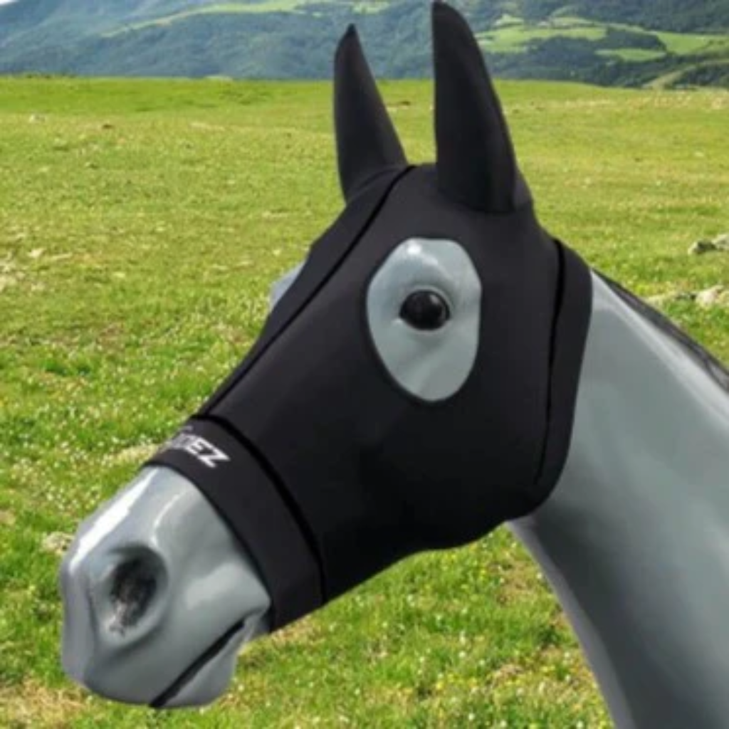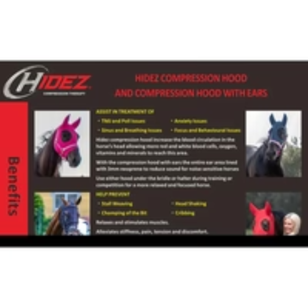 - Hood compresses acupuncture points, TMJ and endorphine release points on the head, relaxing and calming the horse