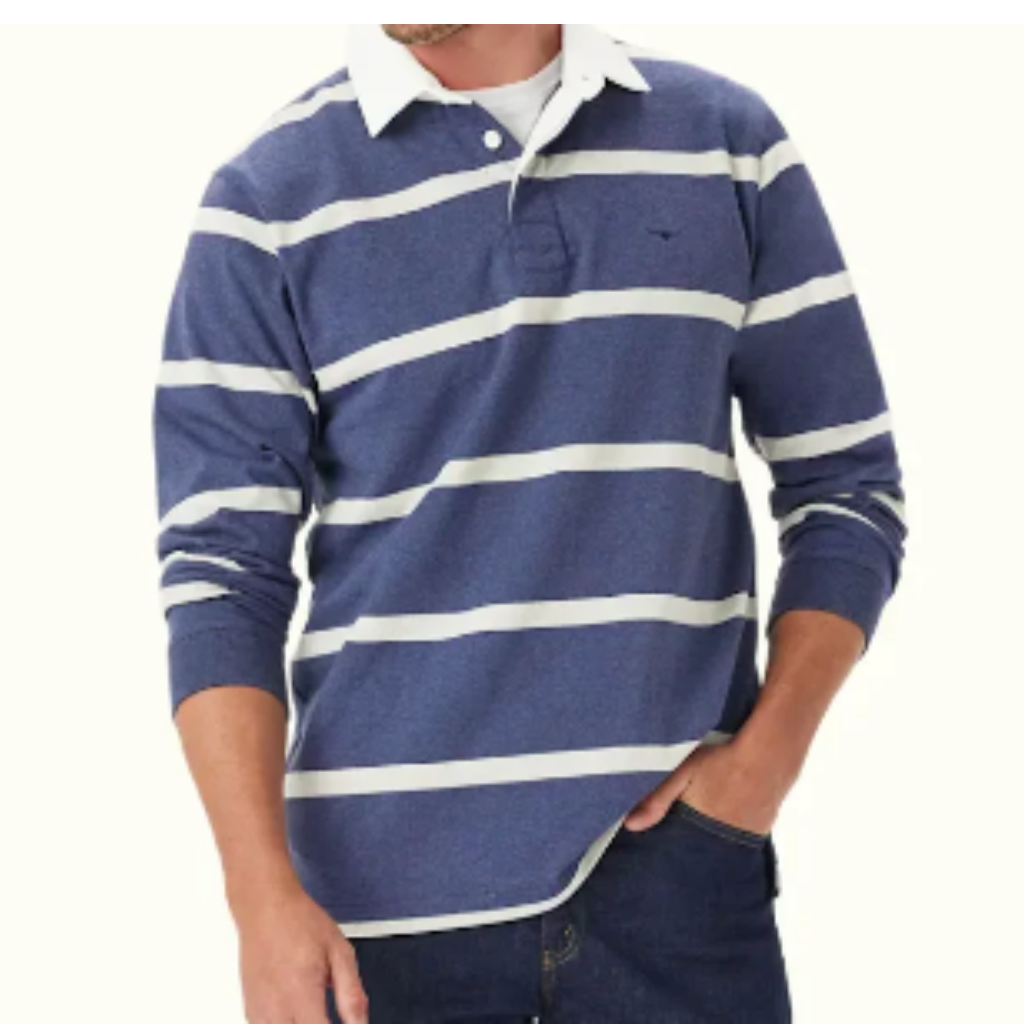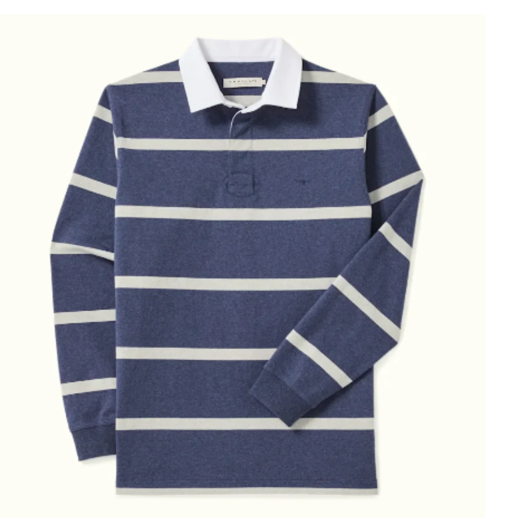 This organic cotton polo features a heavyweight brushed cotton twill collar, a two-button placket with rubber buttons, full-length sleeves with ribbed cuffs, and Longhorn chest embroidery.