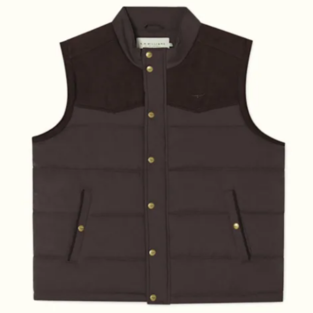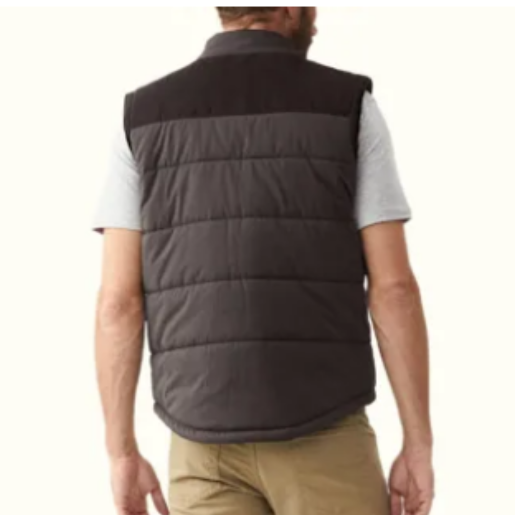The Carnarvon Vest is a timeless essential, crafted from panels of mock suede and quilted suede microfiber, designed to be worn over shirts and sweaters when the temperature drops