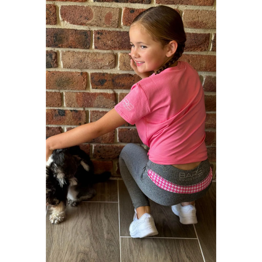 BARE Youth Performance Riding Tights - Grey with Pink Houndstooth