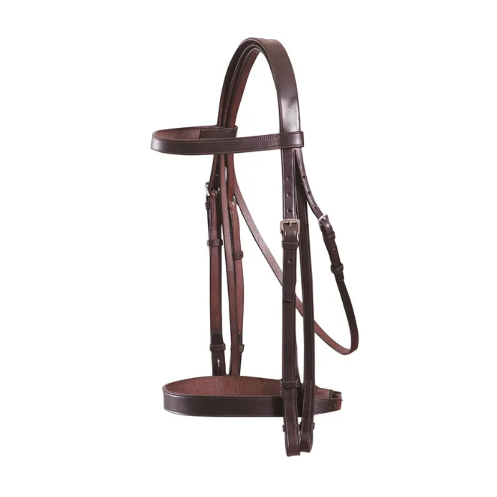 This superb quality bridle has a flat browband & noseband and comes with a pair of laced snaffle reins & a pair of plain curb reins.