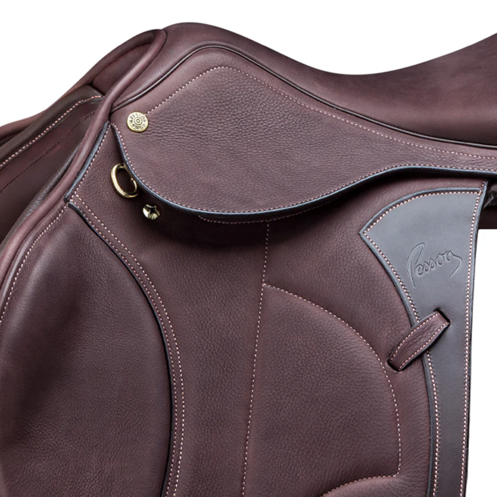 With pre-moulded knee rolls, in its double leather version, the rider manages to find the balance and exact comfort he needs to train. Its flap has padding that no other model has and the drawing gives it its sophisticated touch.